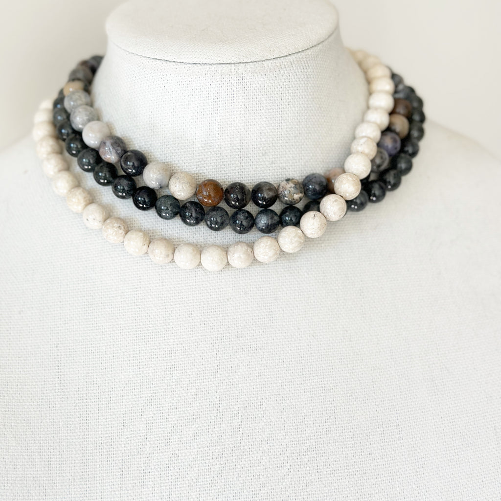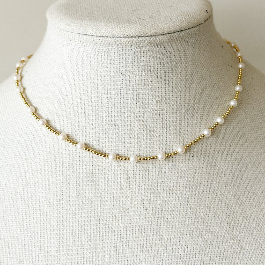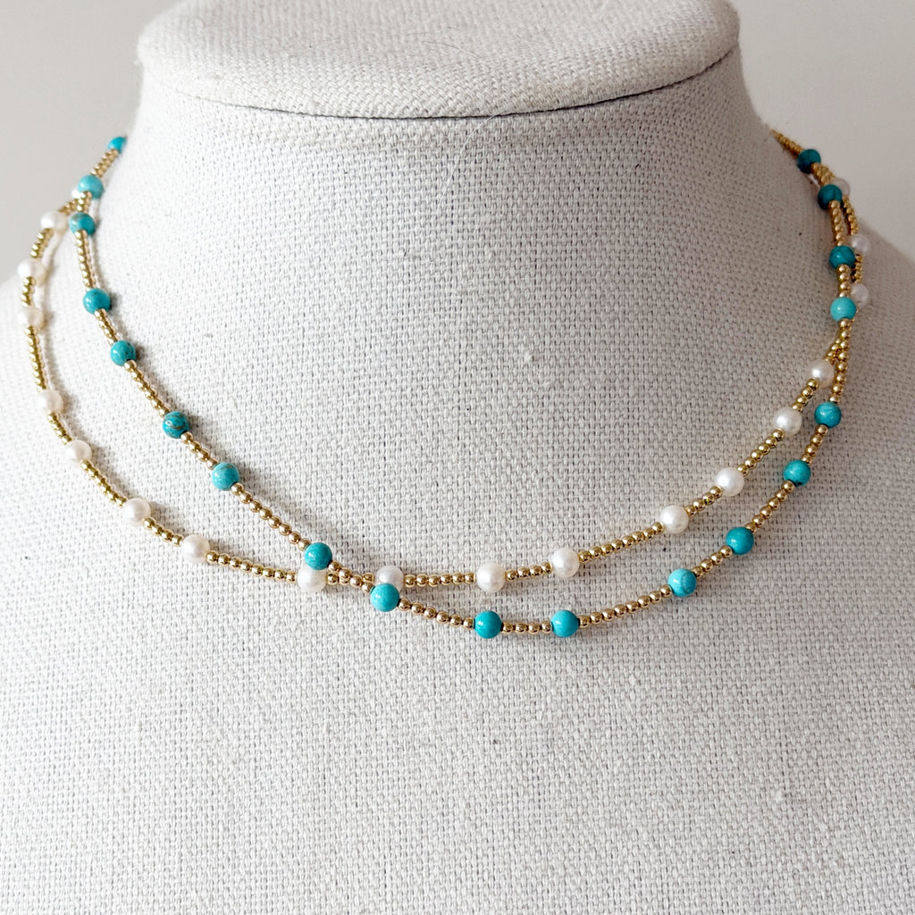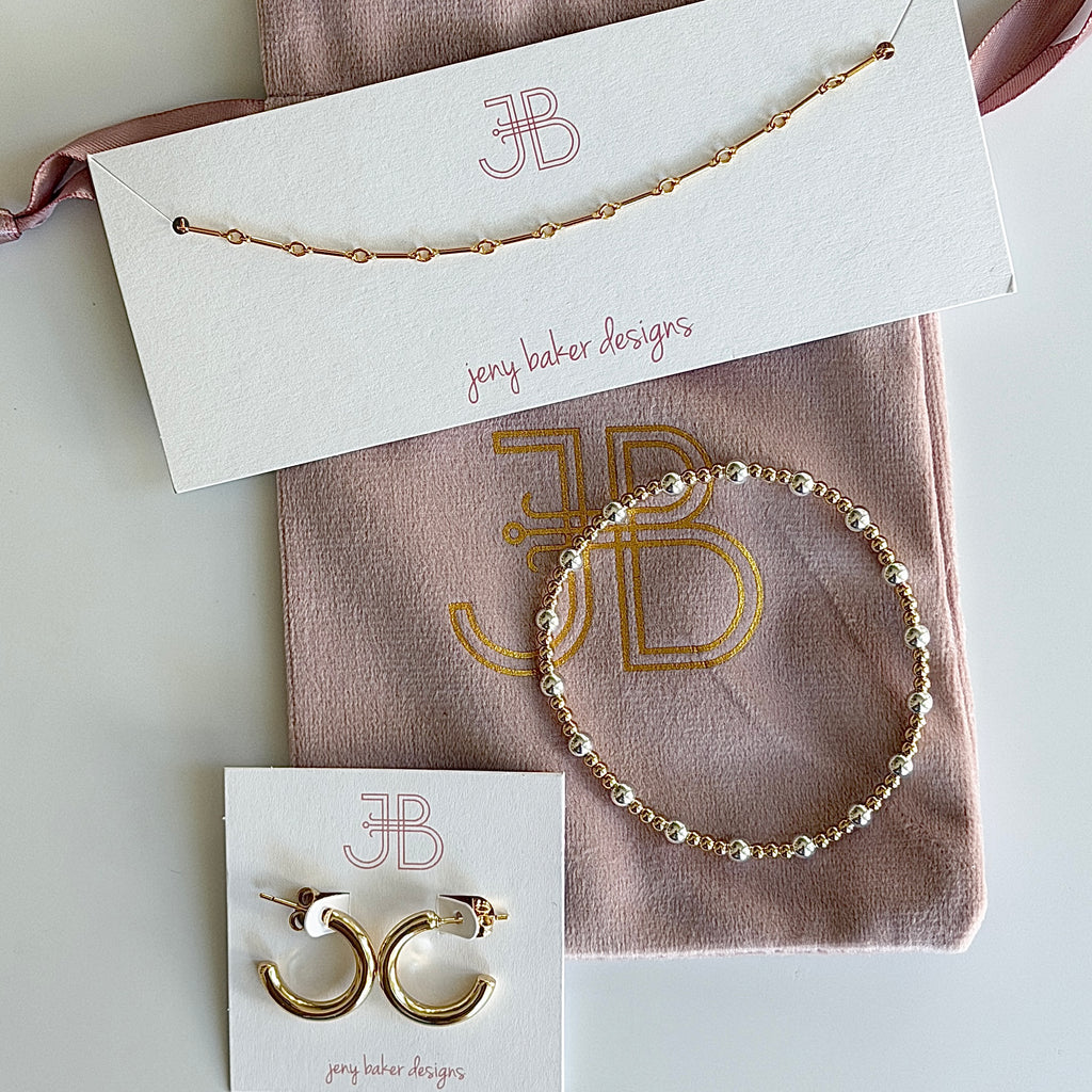 Don't know where to start? Begin with The Everyday or a daintier style necklace--- then add a box chain, gold bead or link necklace- a little longer than the first. Third, add a pendant necklace that hangs longer than the other ones. If you are a "More is More girl," then pop in one or two more necklaces (messy can look styled!) at your preferred length.