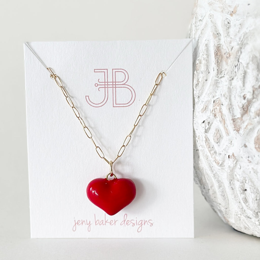Big Puffy Heart Necklace, Red