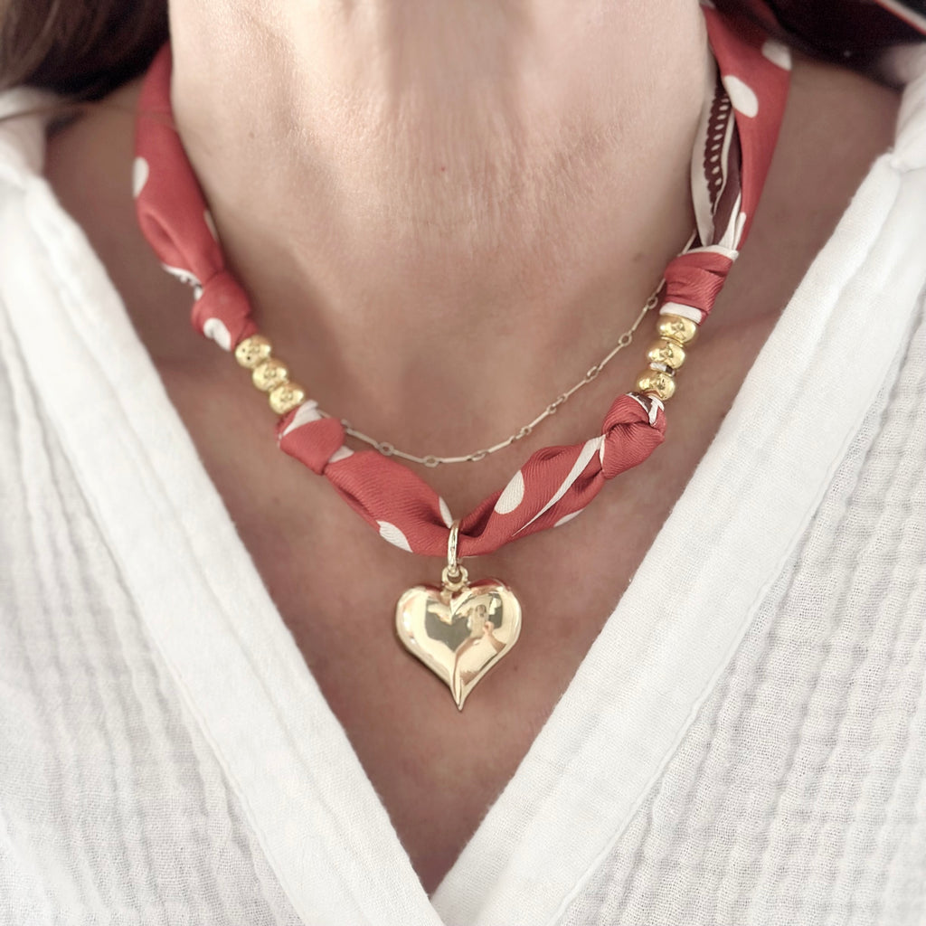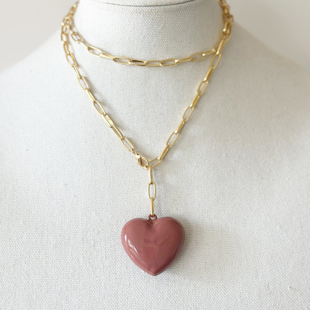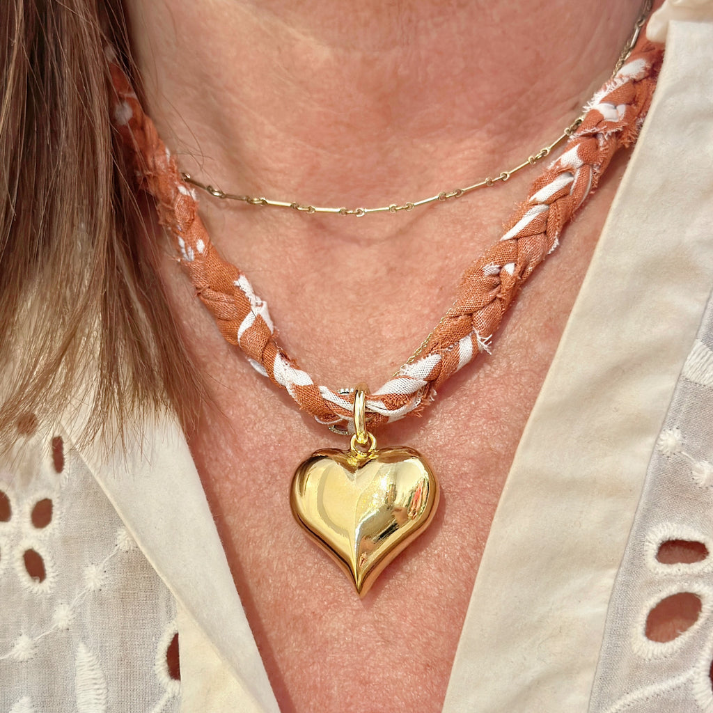Big Puffy Heart Necklace, Tan