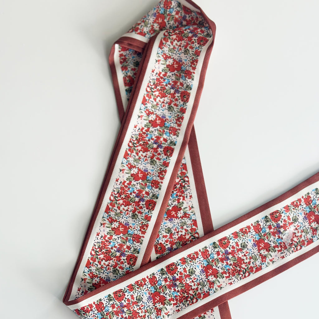 - Scarf with small florals and burnt orange edges- perfect with that fall color tee or outfit.